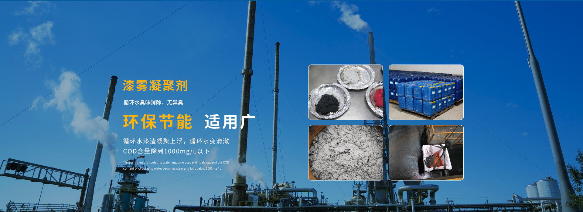漆霧凝聚劑由破粘劑和絮凝劑組成,破粘劑大多由中等分子量的陽離子聚合物組成,電荷極高,對漆滴能產生很強的吸引力,當漆滴被“捕捉”吸附后它利用二極不同的親和性將漆滴完全包裹,并穿透漆滴,破壞涂料的功能基團,使其完全消除粘性,并帶動被包裹破粘的漆滴上浮。絮凝劑大多由分子量幾千萬的聚合物組成,通過在分子之間的“架橋”作用,聚集被破壞的漆霧和雜質成較大的基團,使其堅固和粘合,增強機械脫水的效率。絮凝劑還可中和系統電荷,保持系統中的離子平衡,且分子量較大,使凝集基團在系統中上浮速度加快,并結成漆渣浮于水面。